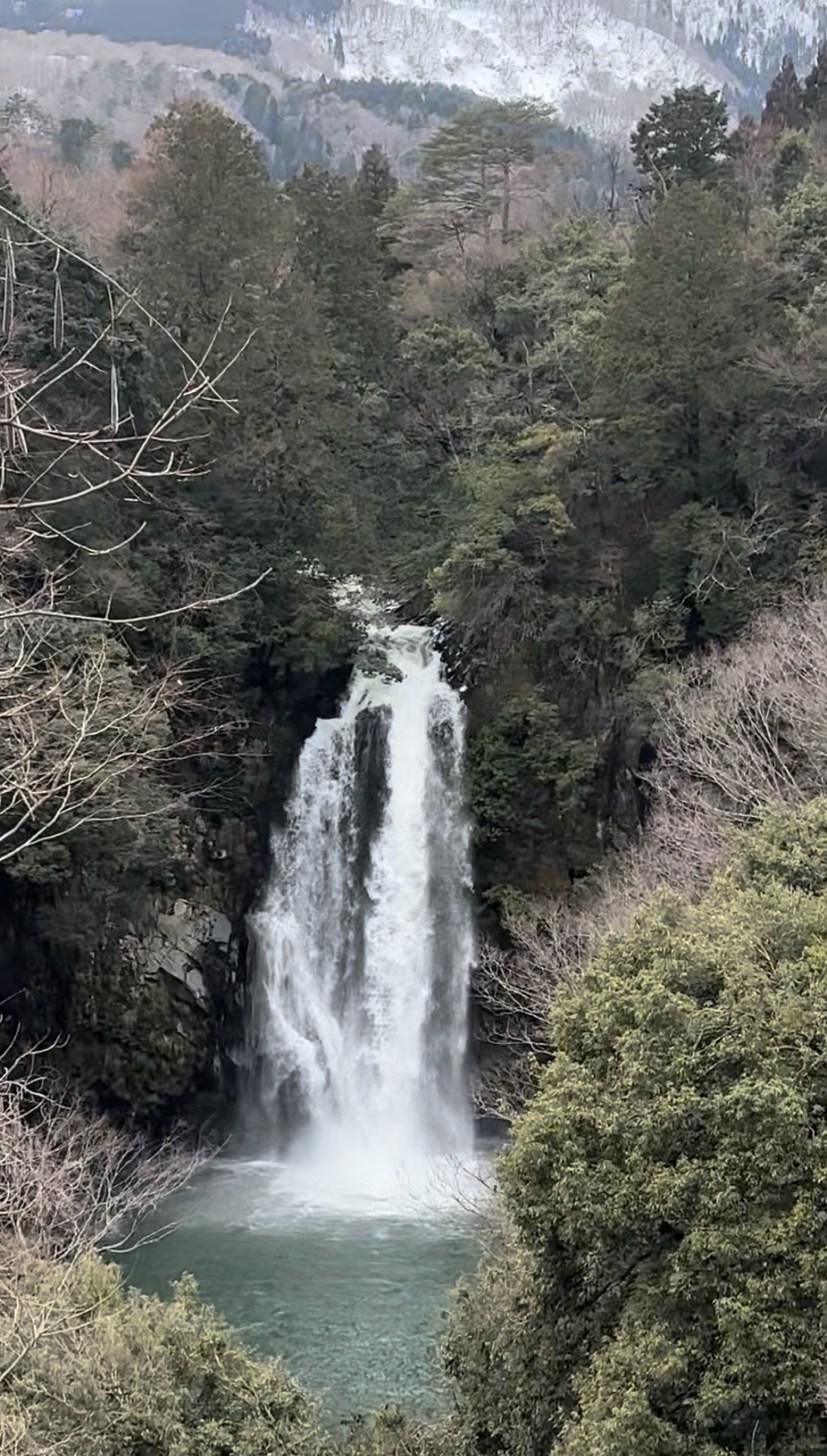 大きな道路を歩いていると突然現れます。3人とも「わー」と歓声をあげるほど、立派な滝でした😆