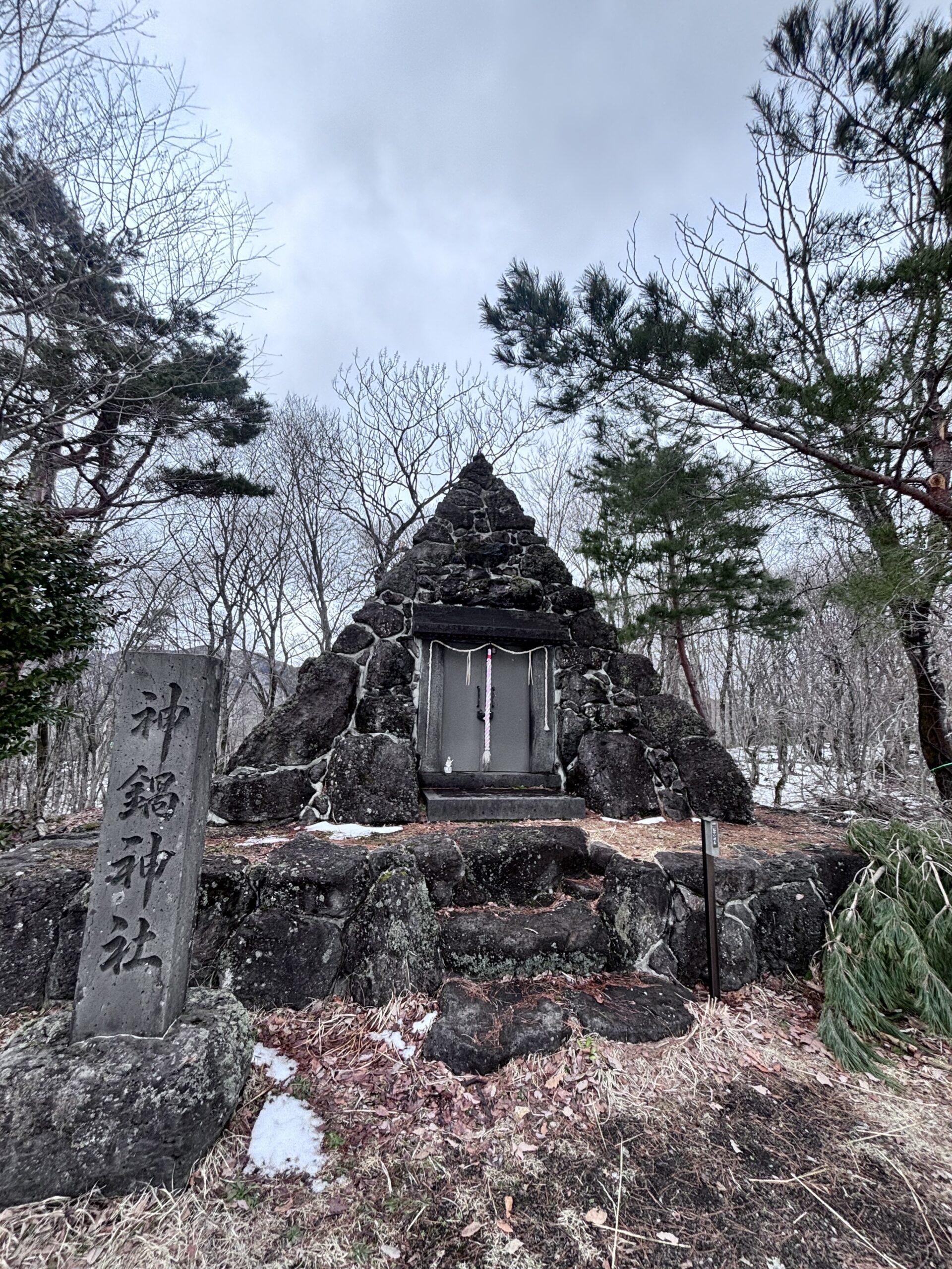 火口口にある神鍋神社。ピラミッドのような形をしている珍しい神社で、清々しい空気の中に佇んでいました。1日目は二人で登ってきたので、翌日は3人で再び参拝🙏