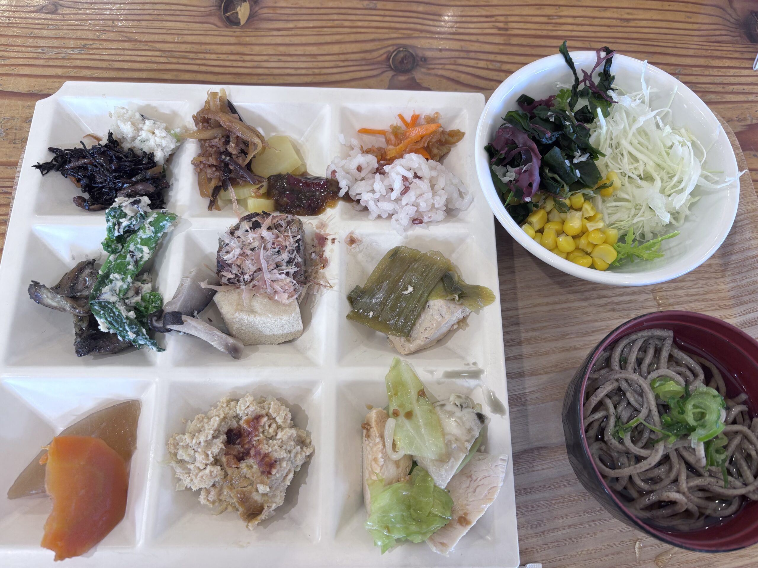 待ち合わせをしていた道の駅神鍋高原。着いたとたんにそこでビュッフェランチ。ヘルシーなものが多くしかも美味しい!ぱくぱく。友人は私の1/2の細さなのに、私の2倍、てんこもりに食べてました😆